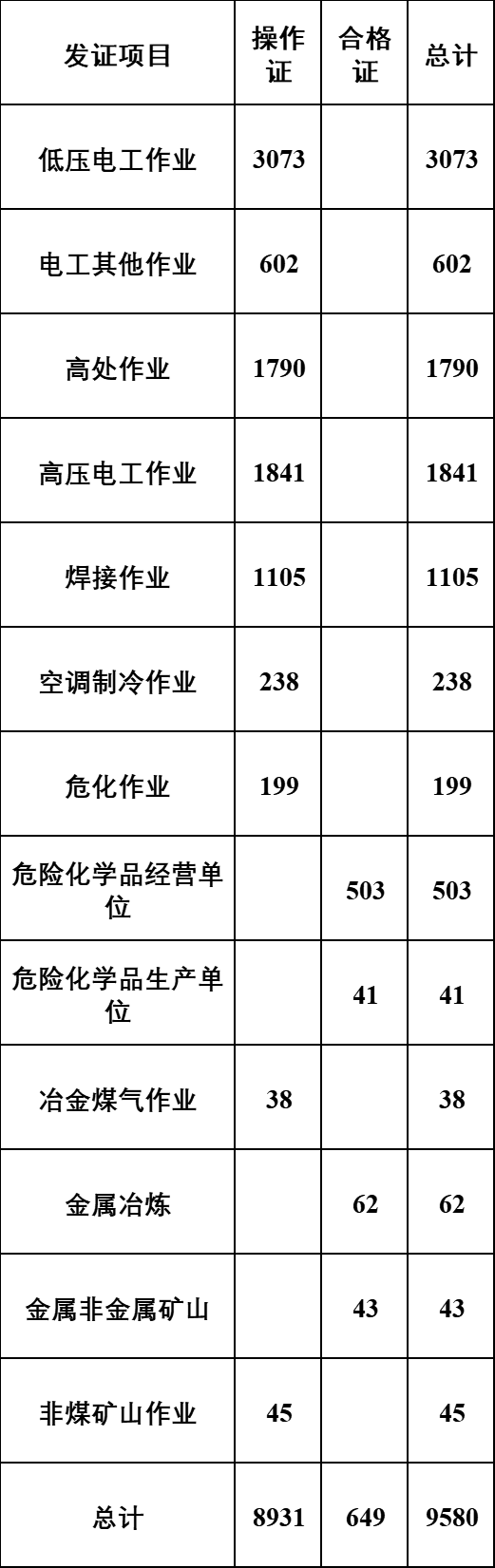 2025年9月全市共组织安全生产“三项岗位人员”理论考试11657人次,实操考试5127人次;共制作、发放各类安全证书9580份。