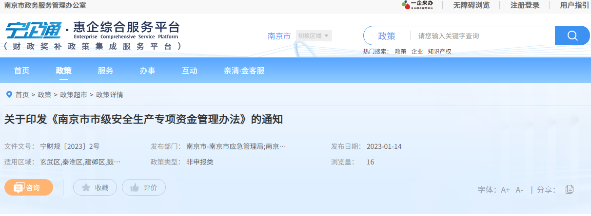 二、关于印发《南京市市级安全生产专项资金管理办法》的通知
