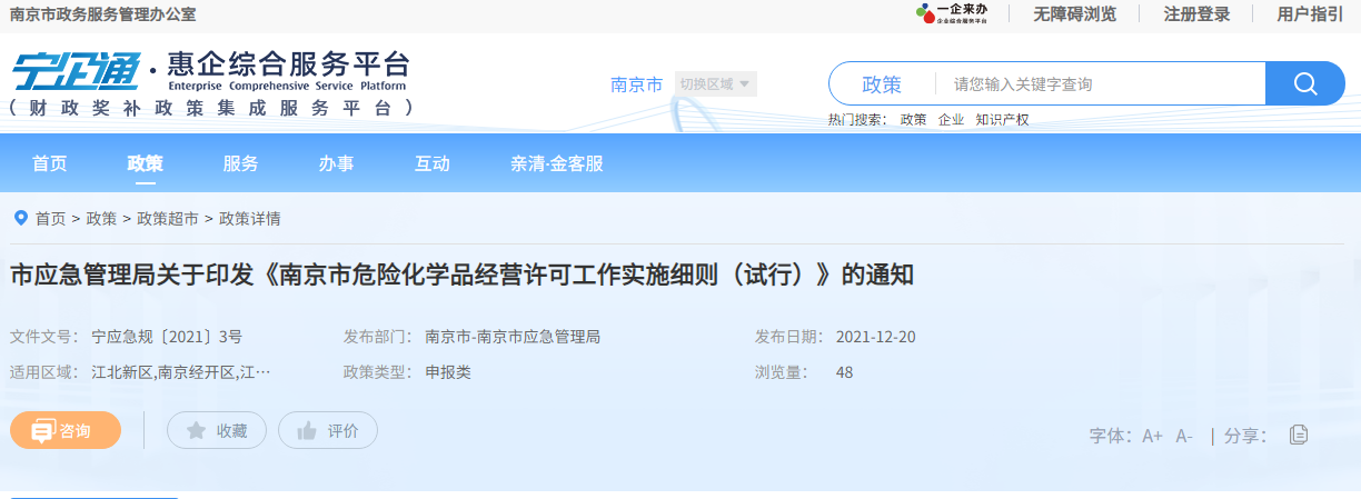 四、市应急管理局关于印发《南京市危险化学品经营许可工作实施细则(试行)》的通知