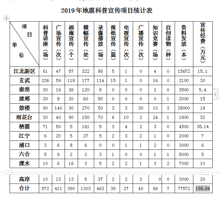 2019年南京市防震减灾专项资金投入明细表 (单位:万元)