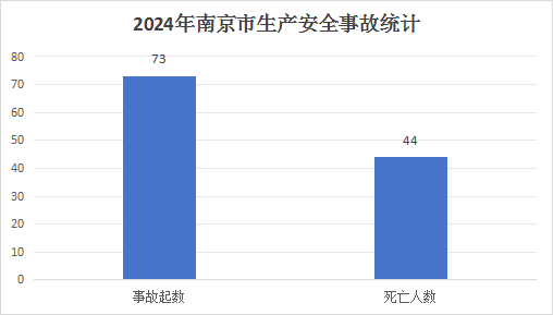 2024年,南京市共发生生产安全事故73起、死亡44人,同比分别下降12%、10.2%。