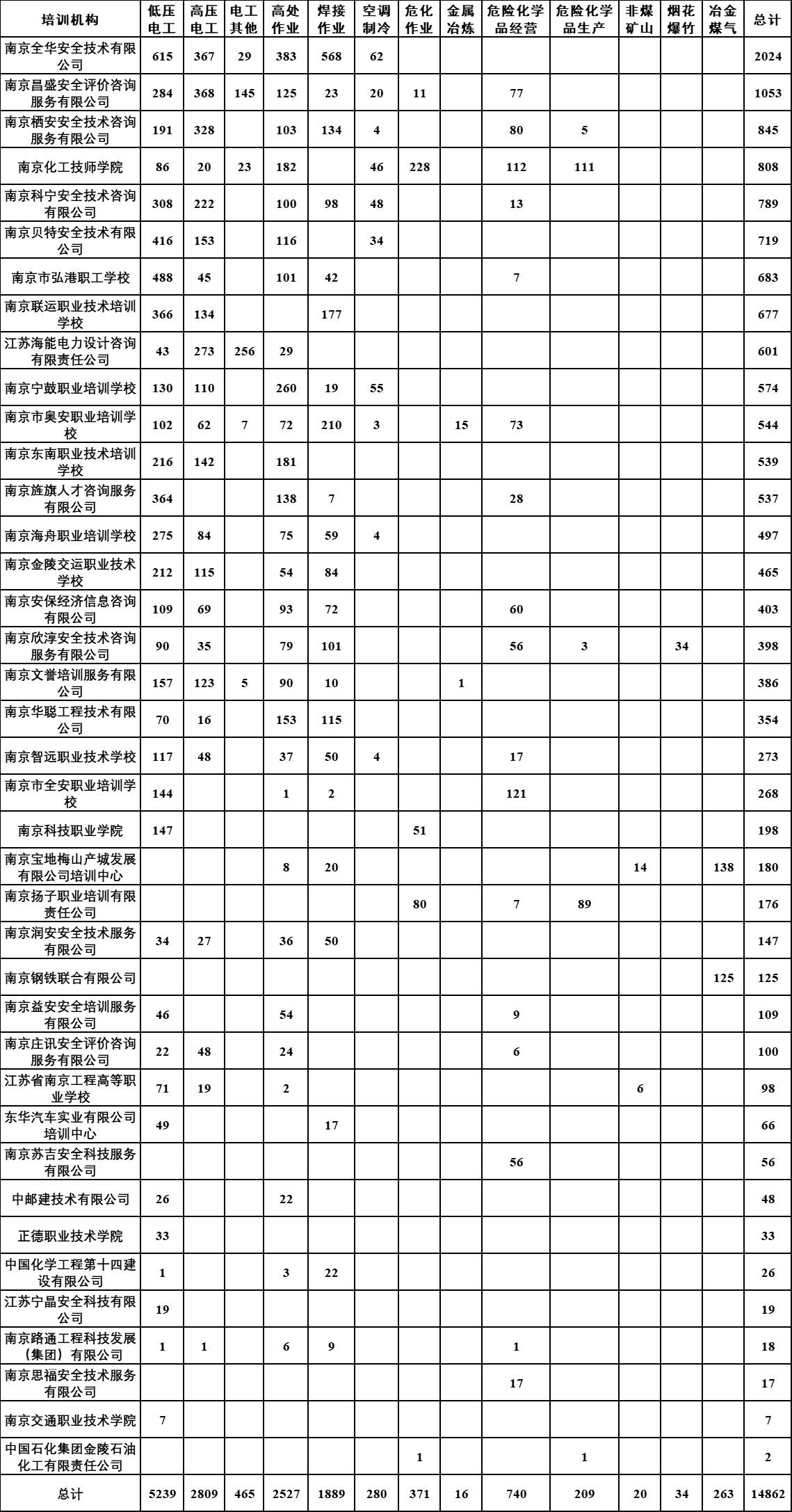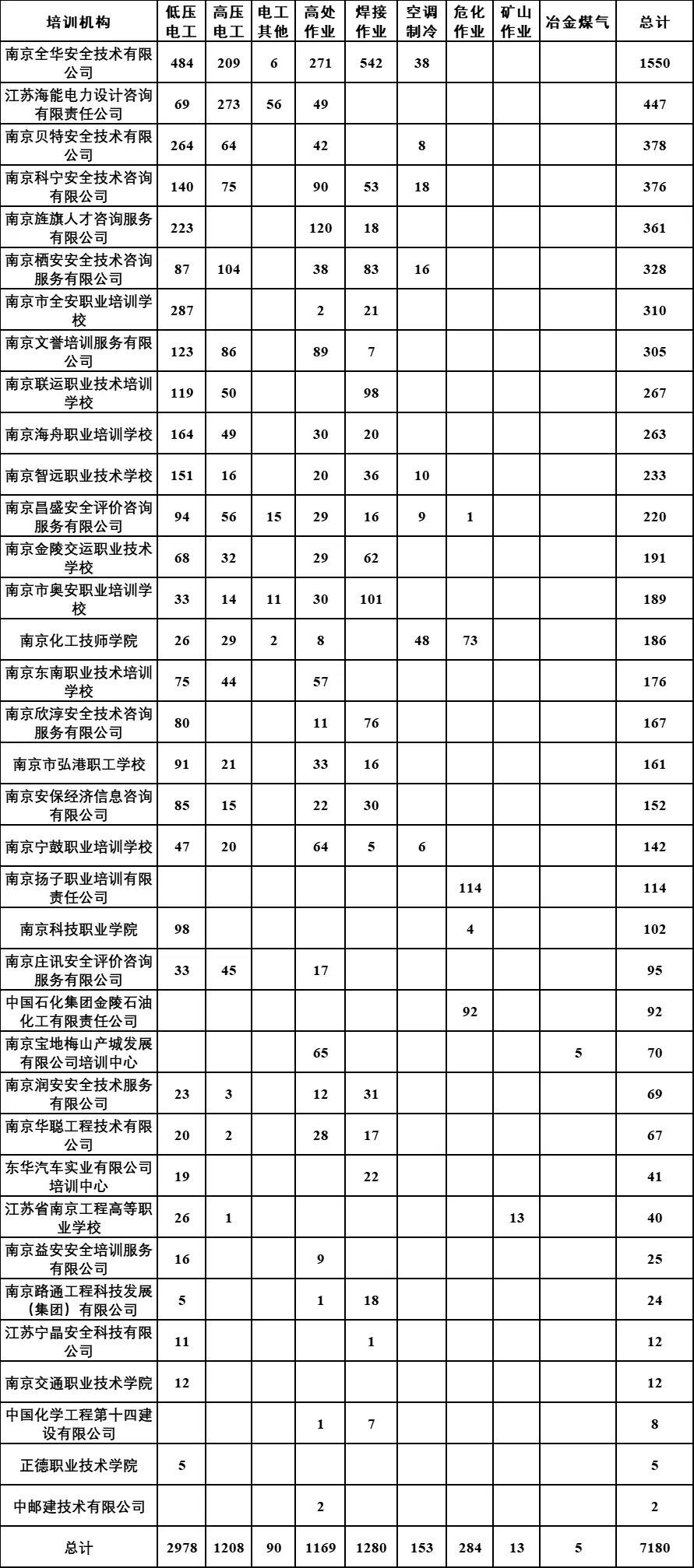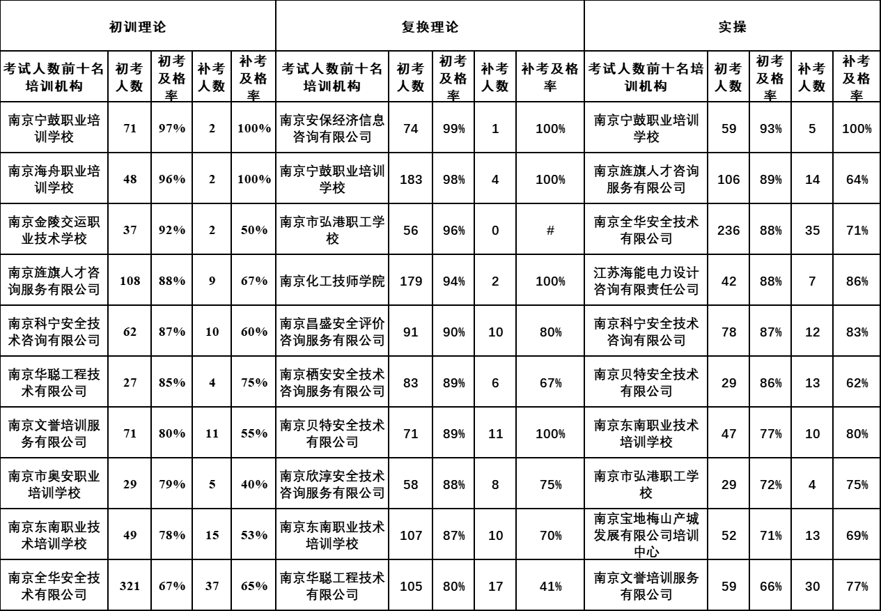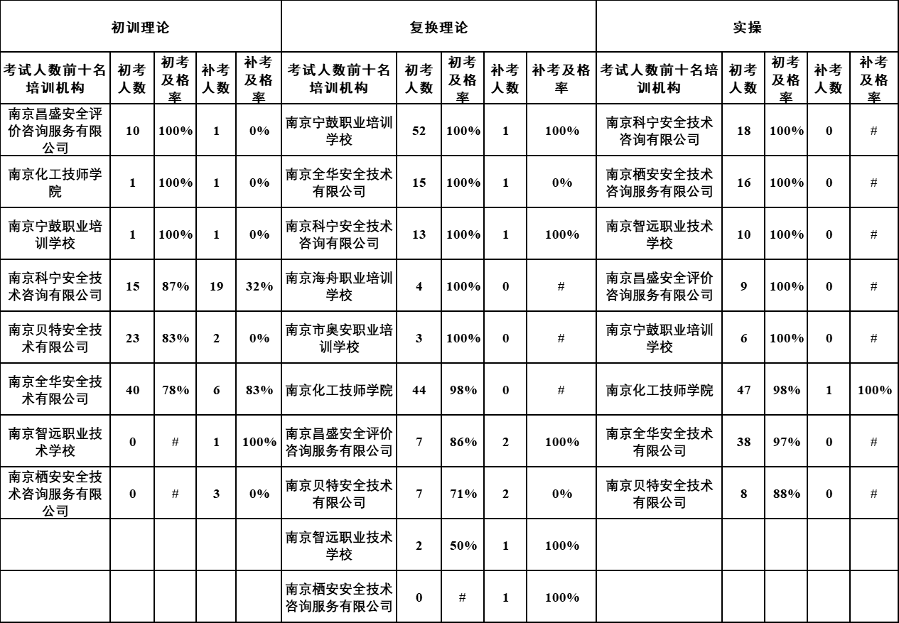 各培训机构高危行业安全合格证考试情况一图速览