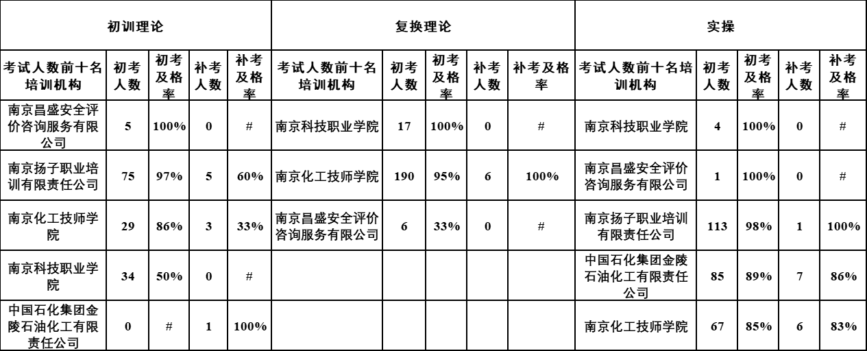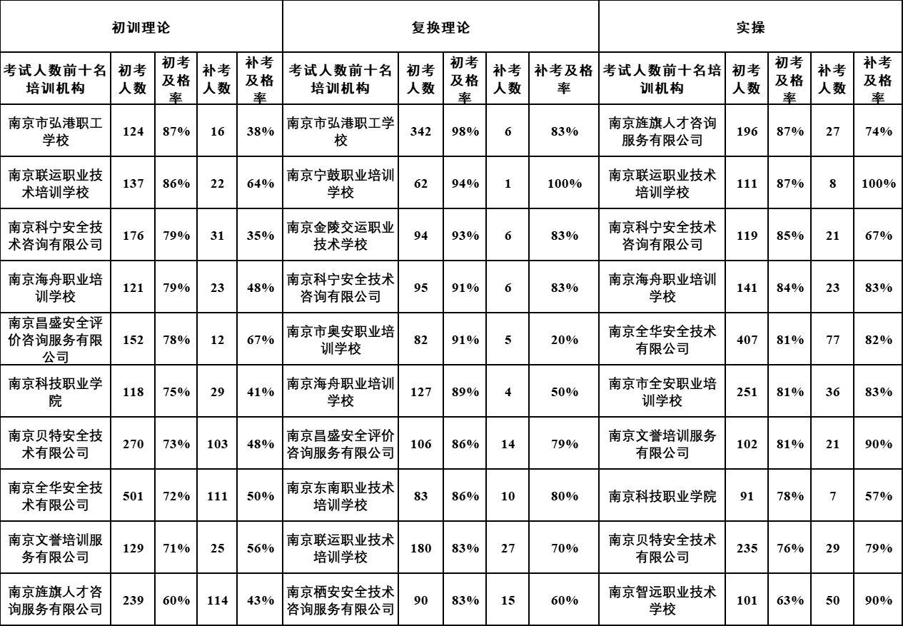 各培训机构特种作业操作证考试通过率情况统计