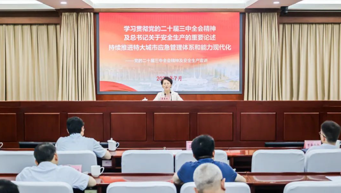 7月30日,市安委会副主任、市委常委、常务副市长霍慧萍围绕“深入学习贯彻党的二十届三中全会精神及习近平总书记关于安全生产的重要论述 持续推进特大城市应急管理体系和能力现代化”主题,开展了党的二十届三中全会精神及安全生产宣讲。